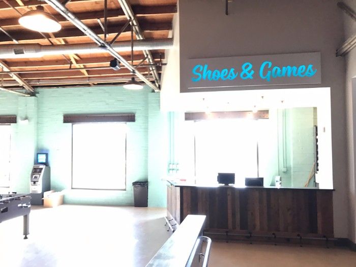 Games include shuffle board, ping pong, Skee ball, pop-a-shot, classic board games and eight lanes of string pin bowling.