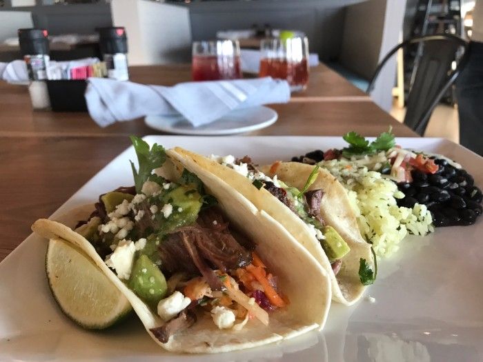 We ordered the brussel sprouts with balsamic glaze ($7), loaded cheese fries ($10.75), barbacoa tacos (2 for $10.50), the Queen Park Burger ($13) and both desserts because life is meant to be lived.