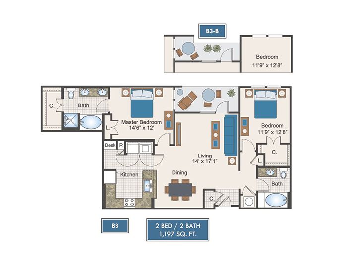 Two bedroom: $1,459 – $3,165