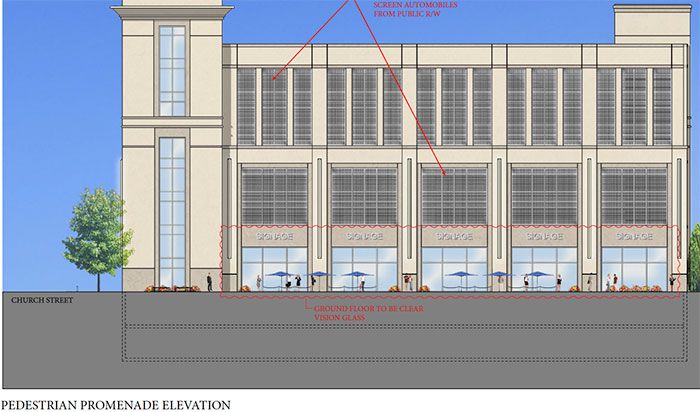 - Space 1: 6,800 square feet (ground floor of parking deck on Church)