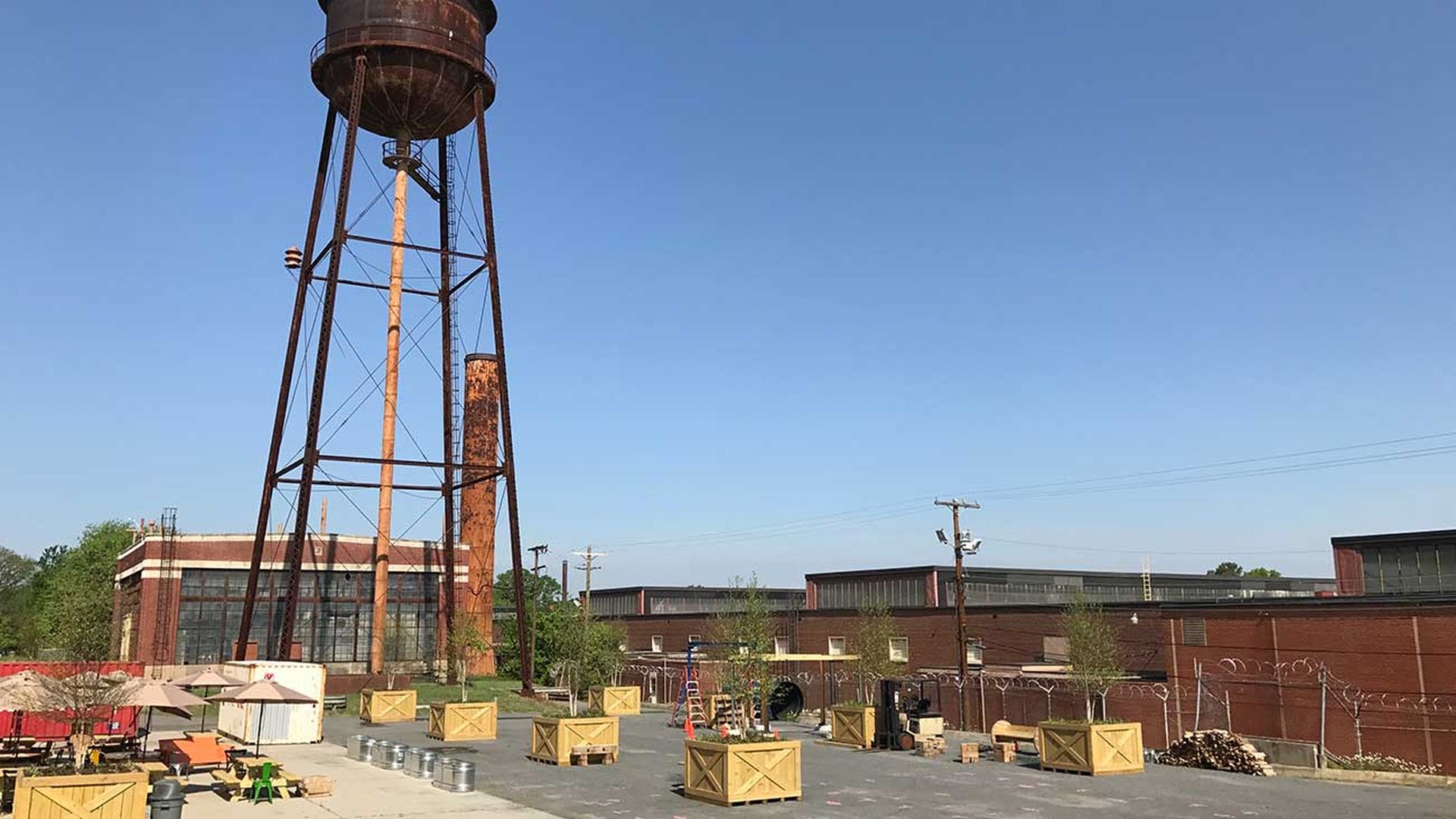 That’s the cool old building with all the windows just under the water tower (see above photo). Unfortunately, it’s not conducive to offices. But Camp North End will be preserving the interior.