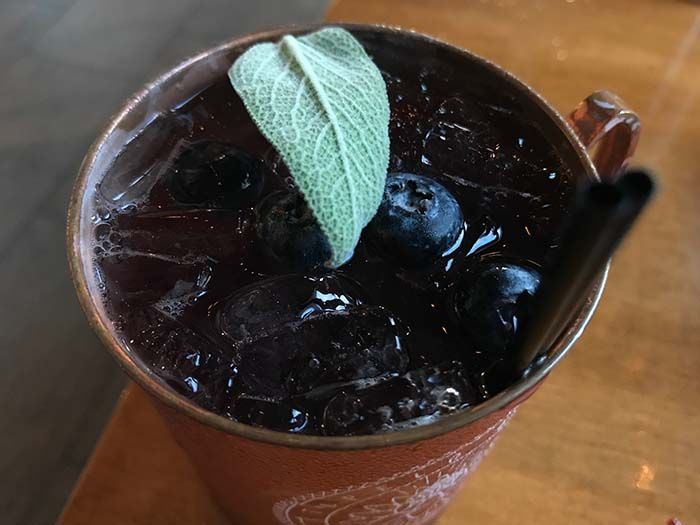 The Blueberry Sage Kentucky Mule is offered on tap and is a combination of Old Forester bourbon with blueberry sage ginger syrup and soda water.