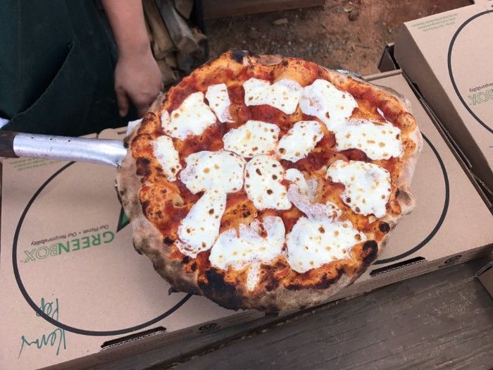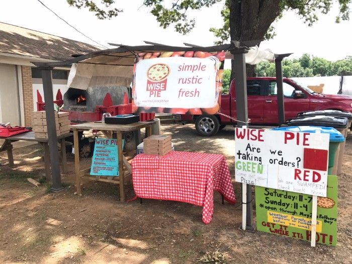 Just across from the barn is Wise Pie, a rustic outdoor pizza kitchen with a wood-fired oven.