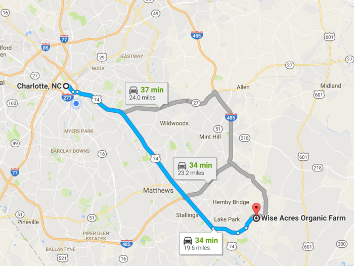 Wise Acres Organic Farm is located in Indian Trail about 30 minutes outside Charlotte.