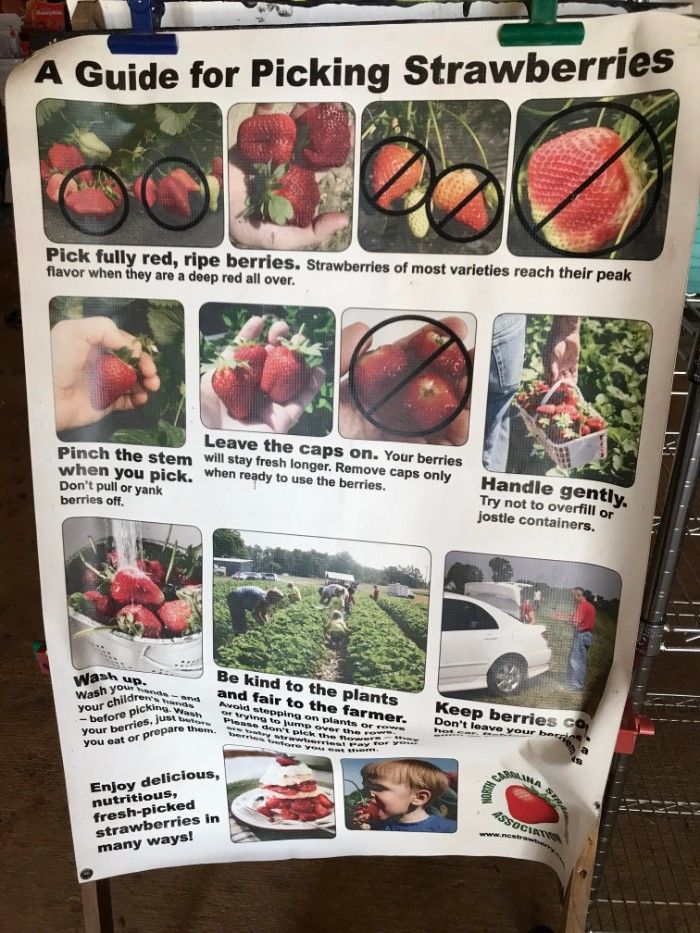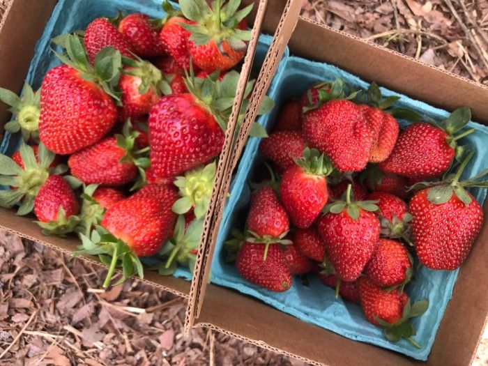 From there, follow the path along the field to the big red barn. You don’t have to wait in line or talk to anyone to start picking. Just grab a container, review the strawberry-picking guide (which will help you identify which berries are ripe) and head out to the field. They have free wagons out front if you have little pickers in tow.