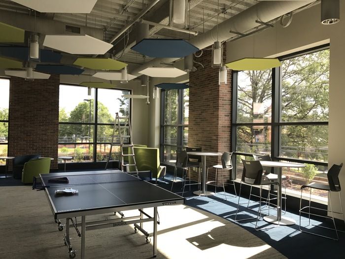 The downstairs has a heavy emphasis on meeting space and fitness.