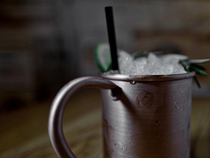 Guests will check in with a hostess after being granted access into the building and emerge into a dimly lit room with copper ceilings, leather booths, two-top tables and book-lined walls that will give the space the feeling that it’s been there for ages.