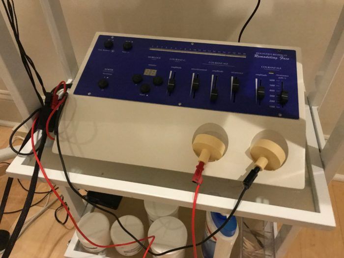 It’s what’s known as a microcurrent facial, a process of applying a weak electrical charge to the face to stimulate and re-sculpt the muscles for a more lifted and toned appearance.