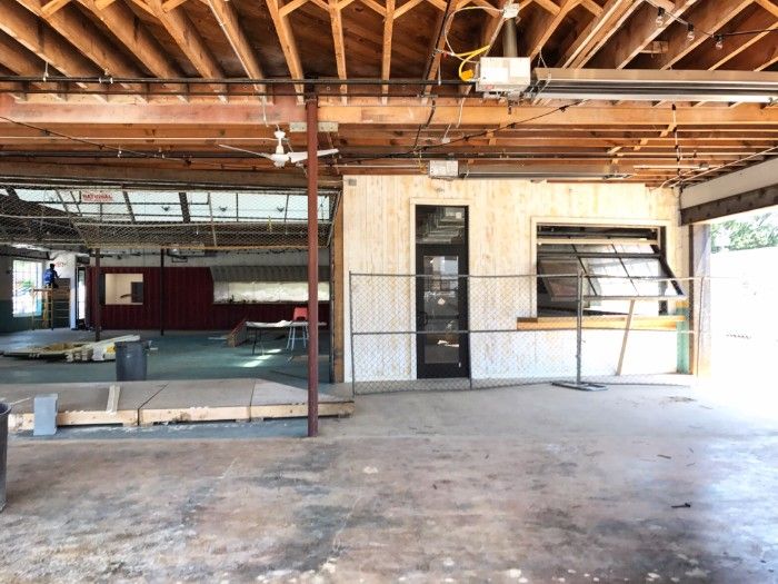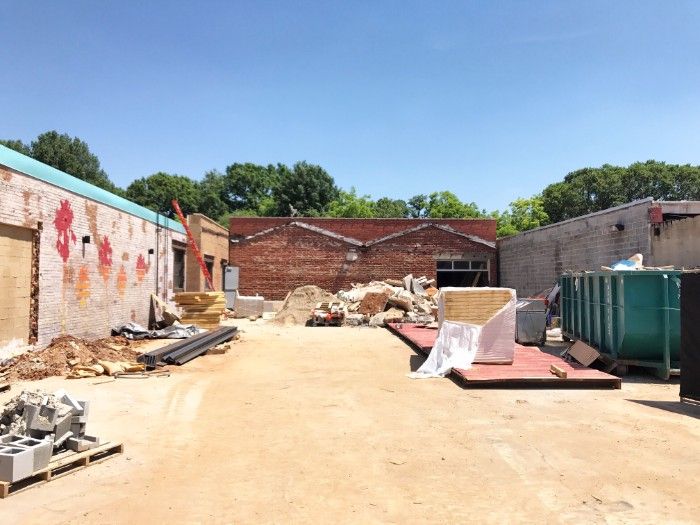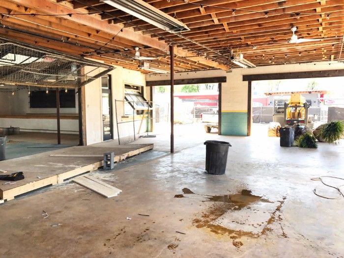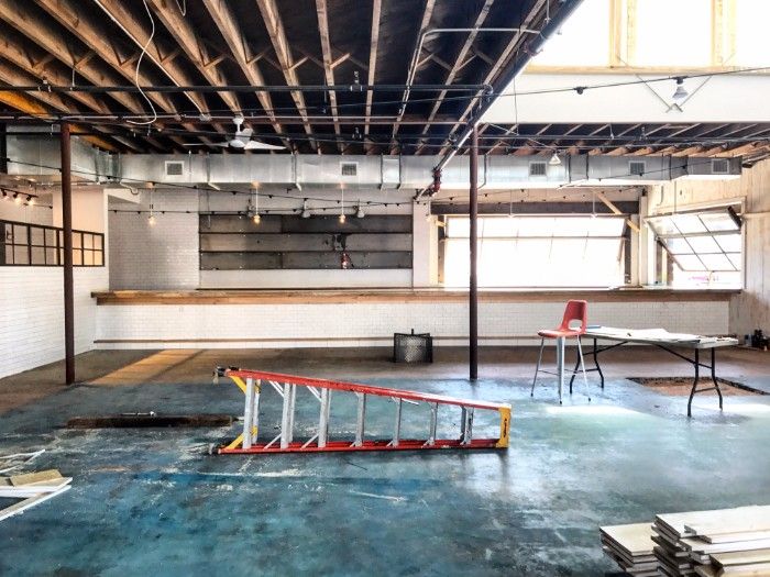 To the right of the building is a sprawling open outdoor space that will have string lights and a stage for live music as well as a second, smaller indoor bar area around the back.