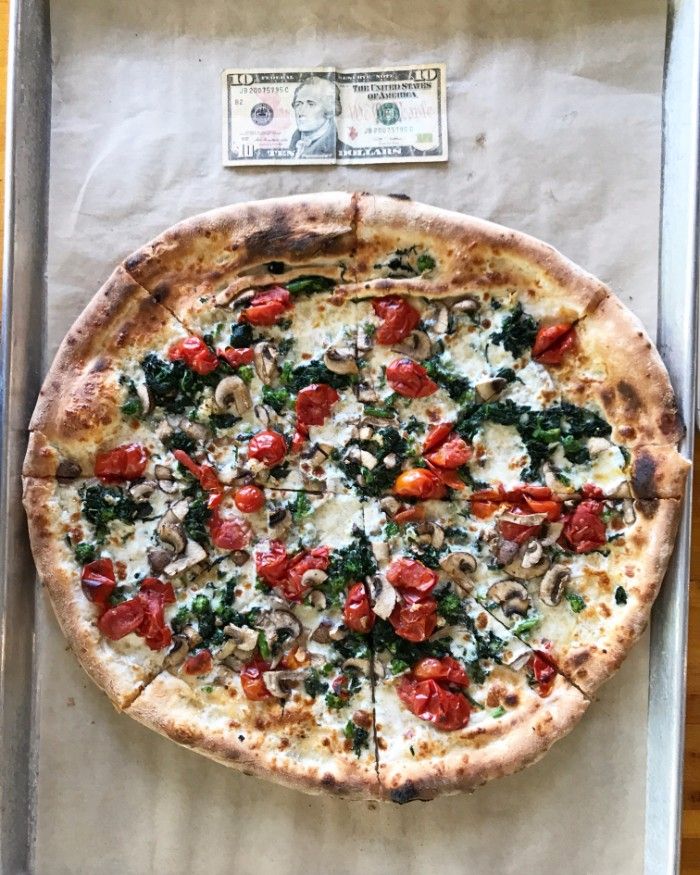 Pizzas are $10 – $15 for a small (11″) and $15 – $22.75 for a large (16″). The small is definitely a manageable size for one person. The large is huge and the photo doesn’t do it justice.