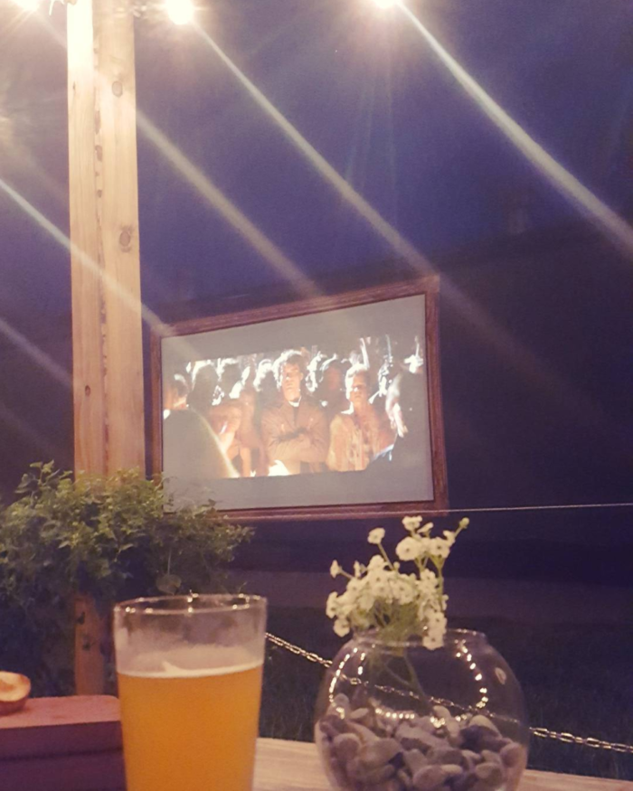 Movies are projected onto a cool painted frame with seating available on Craft’s patio.