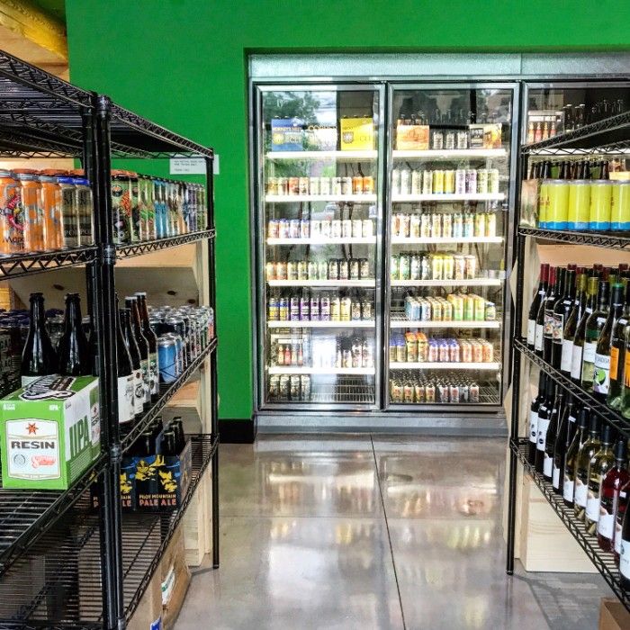 The space is bright and fresh with floor to ceiling windows, green walls and a bold wood paneled bar. It has a slicker, more modern look than other bottle shops and is smaller and more intimate than your typical brewery taproom.