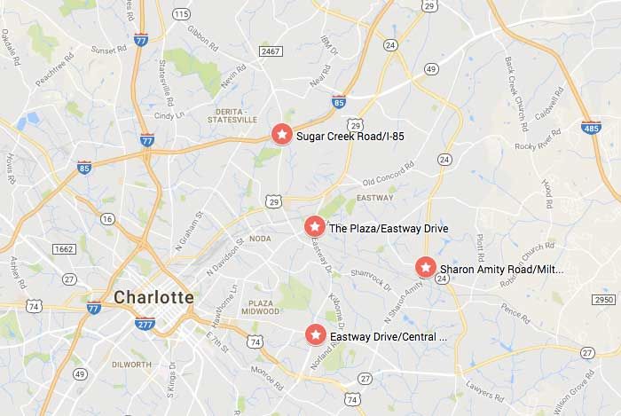 Officers have flooded the following areas as part of “Operation Avalanche”: Sugar Creek Road at I-85, The Plaza at Eastway Drive, Eastway Drive at Central Avenue, and Sharon Amity Road at Milton Road. There have been homicides this year near each of those areas.