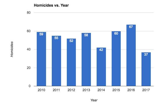At this time last year, there were only 17 homicides — and 2016 marked a six-year high.