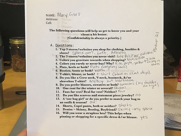 First, I filled out a questionnaire about the brands I like, don’t like, and my overall style. Then, a few days later, Cathy and Kristen came to my house and wasted no time getting all up in my closet.