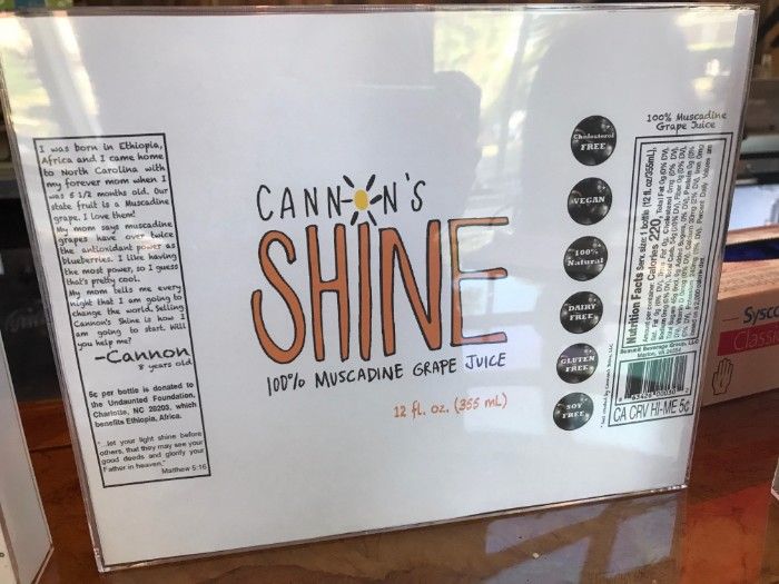 A third muscadine drink in The Packhouse’s product lineup is Cannon’s Shine, a 100% muscadine grape juice named after Mills’ son Cannon Behailu Mills. Cannon’s drink will donate 15 cents from every bottle to the nonprofit of his choice benefitting his birth country of Ethiopia.