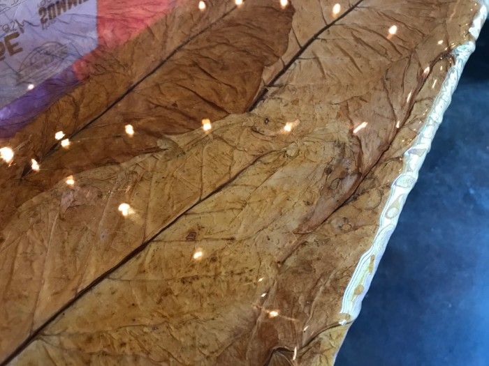 The main bar features a unique tobacco leaf countertop created by Artisan Leaf.