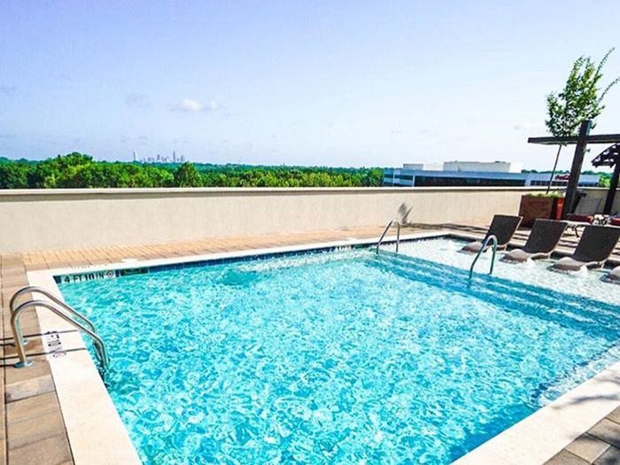 The rooftop pool has stunning views of Charlotte and Uptown. Some residents describe the view as “Central Park” due to the beautiful North Carolina trees found between the pool’s edge and Uptown view.