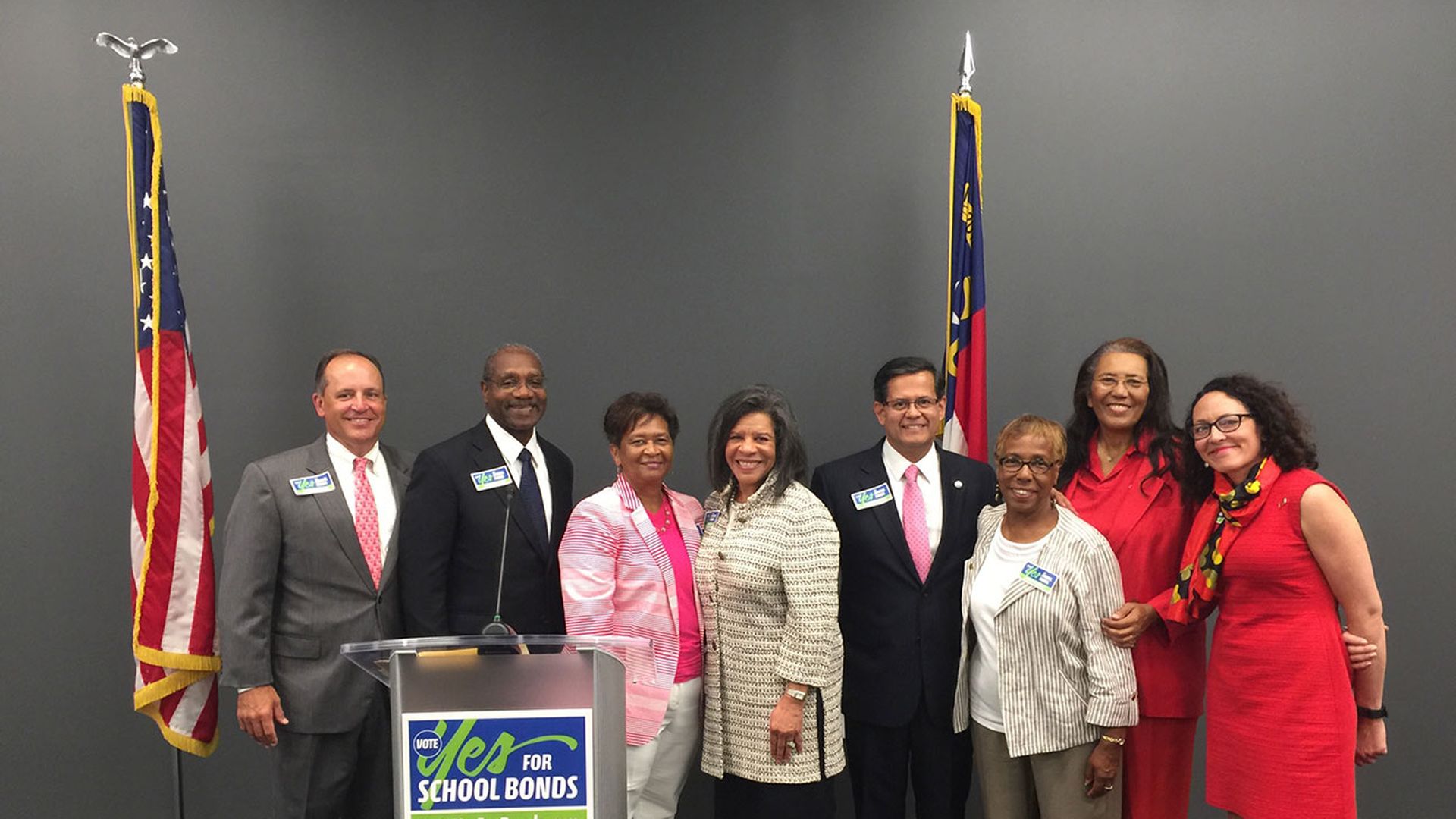 A day after Mecklenburg County commissioners put a bond referendum on this November’s ballot that would fund new school buildings and renovations across the city, Charlotte’s business and government leaders kicked off a campaign to get voters to approve them.