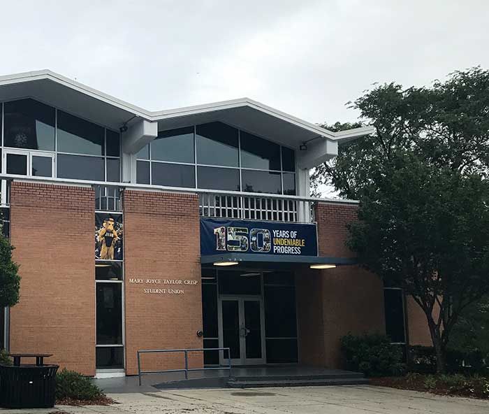 The sign above the door to Johnson C. Smith University’s student union touts a milestone anniversary in the life of the west Charlotte campus: “150 Years of Undeniable Progress.”