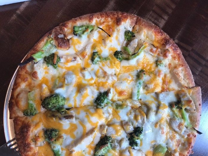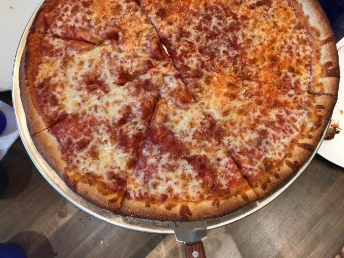 Pizzas come in two sizes — 13″ or 17″ — and are available on either Buffalo- or New York-style crust.