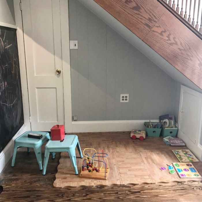 There’s even a kid-friendly play room under the stairs and a couple nearby seats so parents can hang close.