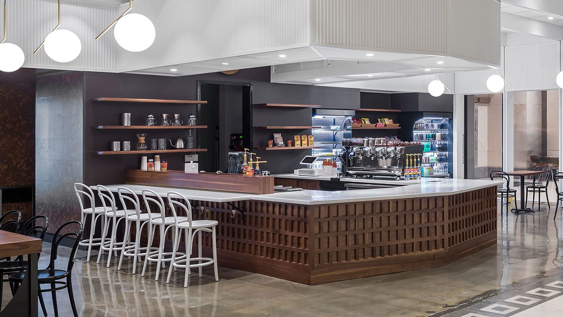 The menu at the Fifth Third location focuses on espresso drinks and hand-poured coffee, but also includes pastries and other food options.