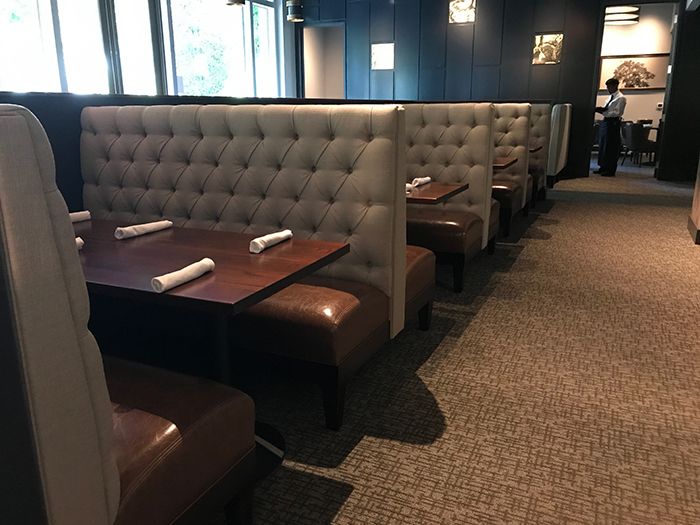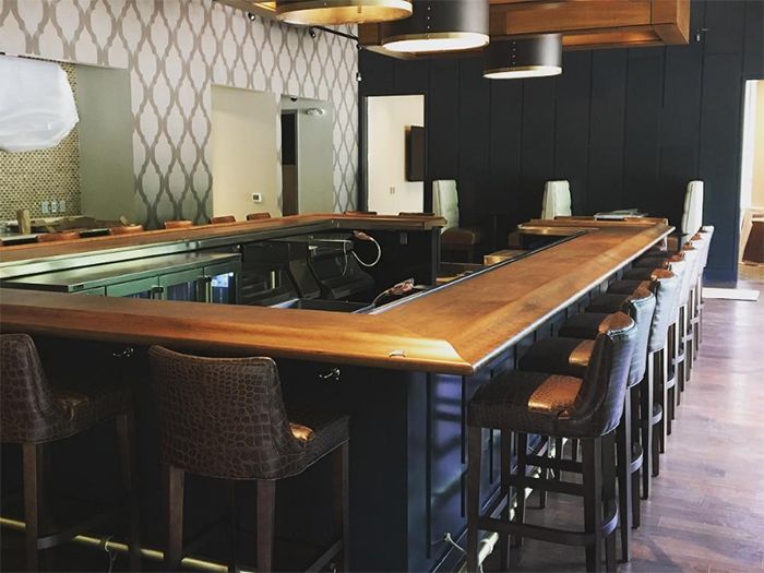 The space offers a large dining room with just over 40 tables, a gorgeous bar area with brass and marble accents, two private dining rooms and two spacious patios.