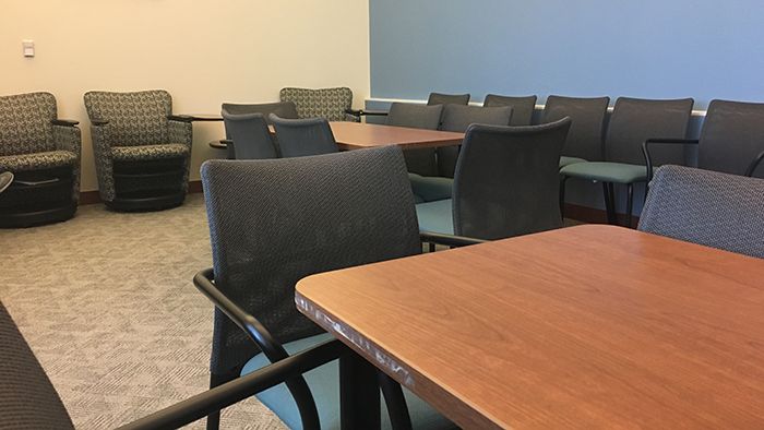 The jury assembly room used to be the equivalent of what you’ll find in most other juror facilities in the state: nothing more than an auditorium-style room with a TV on a rolling cart. Sounds awful, right?