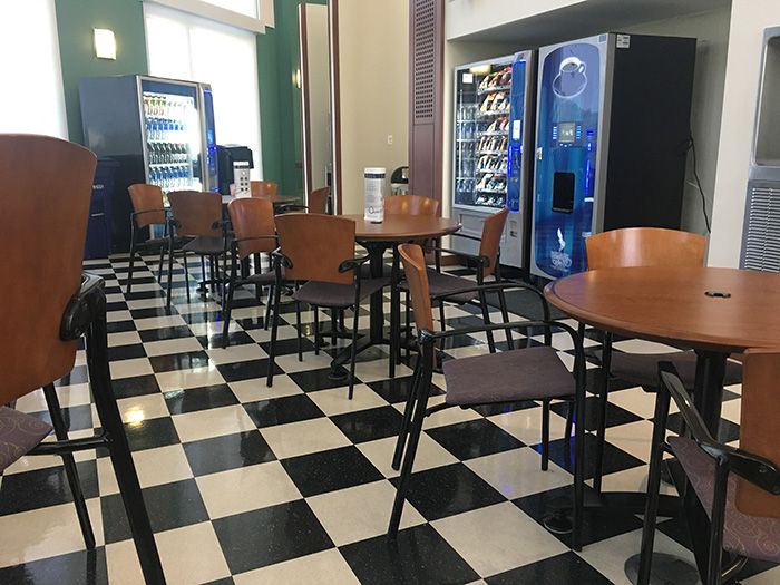 There’s tons of open space in the facility to kick back. The kitchen includes a sizeable fridge to store your lunch as well as various vending machines to satisfy all of your caffeine and snack cravings.