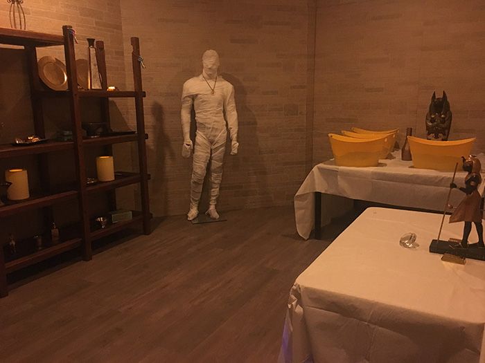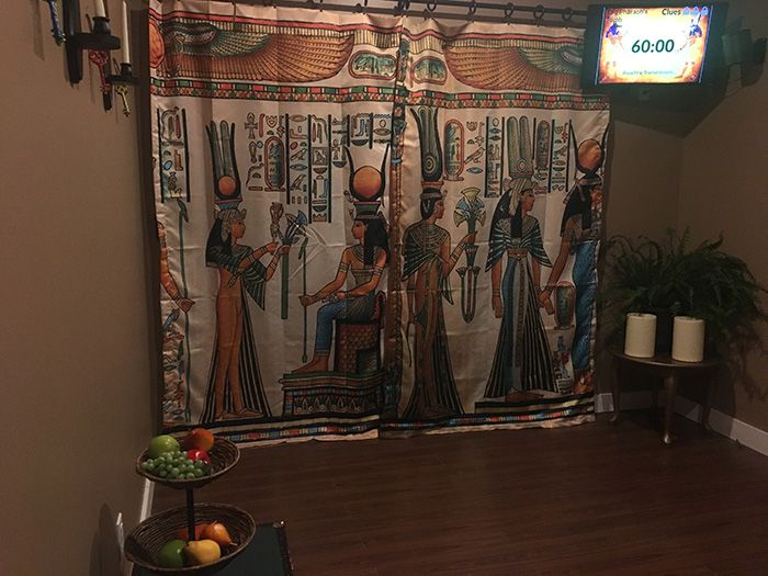 No escape room is complete without a secret room, and The Pharaoh’s Tomb delivers with a secret entrance hidden under the tapestry. This room and others will soon include Z-Wave technology, which produces motion-sensor special effects. Basically, a sensor is hidden on an object like a gold coin. Then, when that object is moved from its designated spot, the lights go out. When you move it back to its place, the lights turn back on. It’s a pretty cool way to make the room feel that much more authentic.