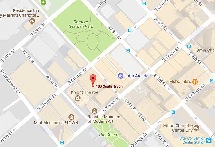 The restaurant will be located at the corner of Church Street and Martin Luther King Jr. Boulevard, at 400 South Tryon Street.