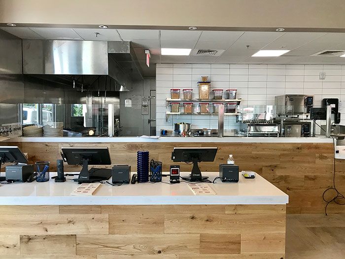 All food will be prepared behind the counter in the open kitchen, so customers can watch.