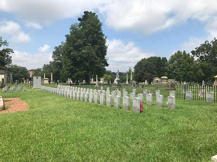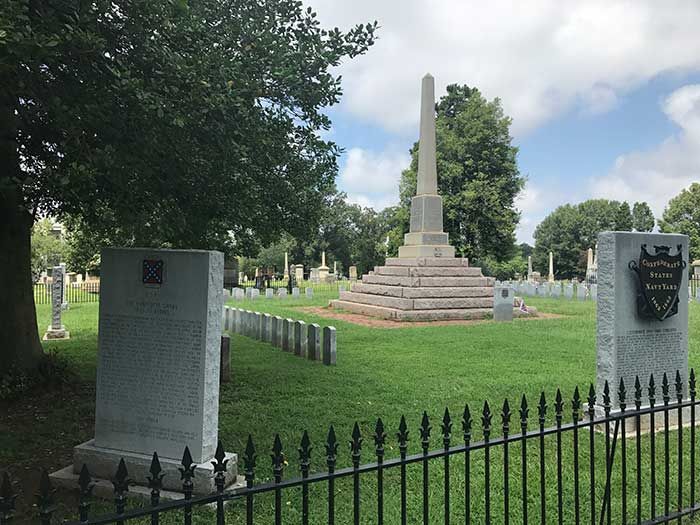 There is an obelisk there, erected in 1867, that honors Confederate soldiers from Mecklenburg County who died during the Civil War. There are also numerous graves of Confederate dead, many marked with mini Confederate flags.