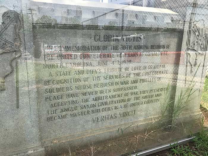 There are numerous others around the region (including one in Cornelius), but the city of Charlotte has two major Confederate monuments standing today.