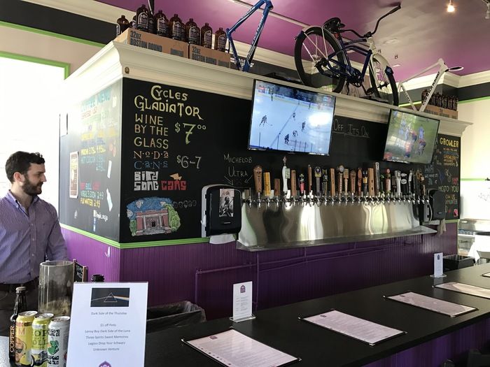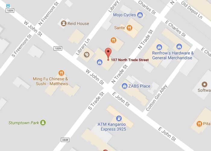 The bar is made out of a 18-foot, half-ton slab of wood from a single North Carolina tree. The doors were reclaimed from the old Matthews Hotel (made possible with a grant from the town council).