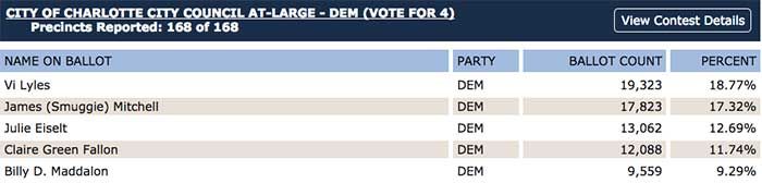 Charlotte has four council members who are elected citywide. In the primary, this means that voters will be choosing four Democratic candidates. The Republican Party did not mount four candidates, so they won’t even appear on your ballot if you go that route.
