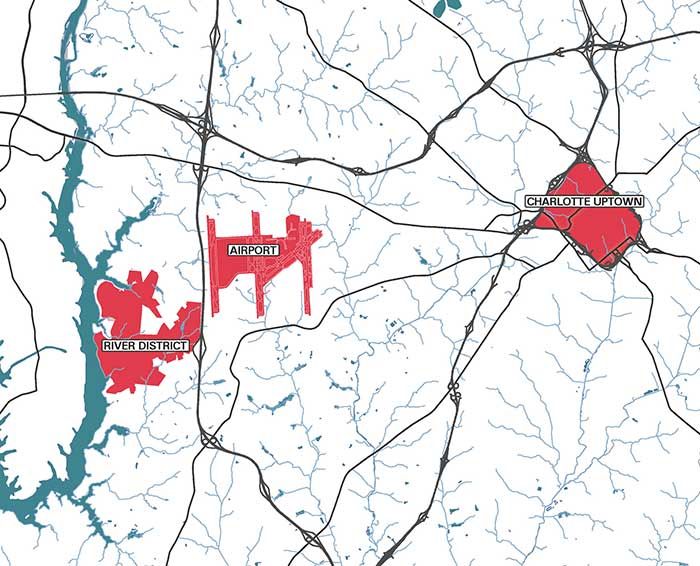 My mind immediately jumps to the River District in planning along the banks of the Catawba River, near the airport. It’s already been described as the “next Ballantyne,” and it’s still early enough in the process to shape it to Amazon’s specifications.