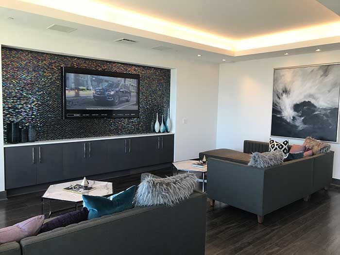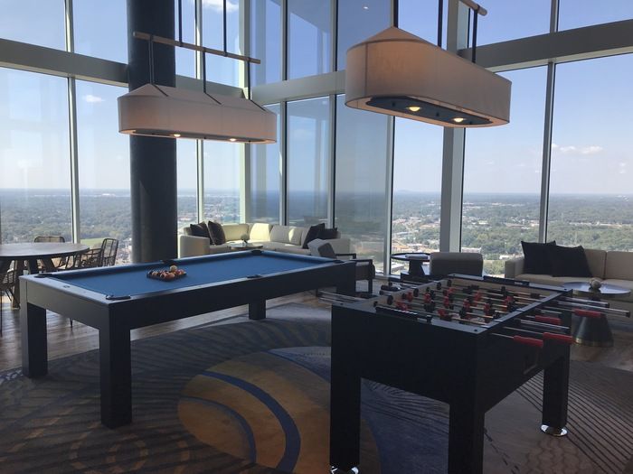 The game room with a view at Museum Tower. On the 43rd floor. You could watch the Panthers play from here.