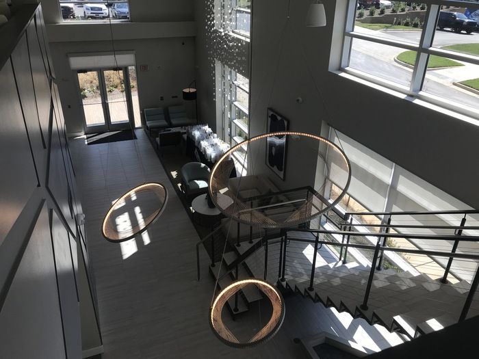 If there’s one thing that stood out, it’s just how fancy these apartment communities have become. It’s not just the newness of them, though that helps. There’s also the high ceilings in the hallways, wide swaths of glass letting in natural light, exquisitely manicured common areas — and even custom-made artistic fountains.