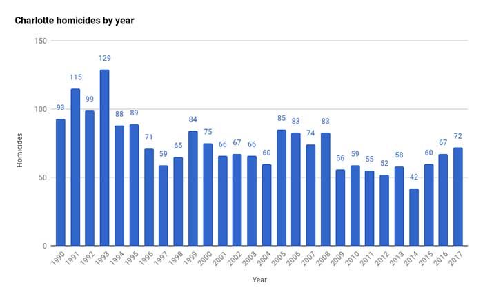 That makes this year already the deadliest in Charlotte since 2008, when there were 83 homicides. There’s a good chance 2017 could eclipse that total.