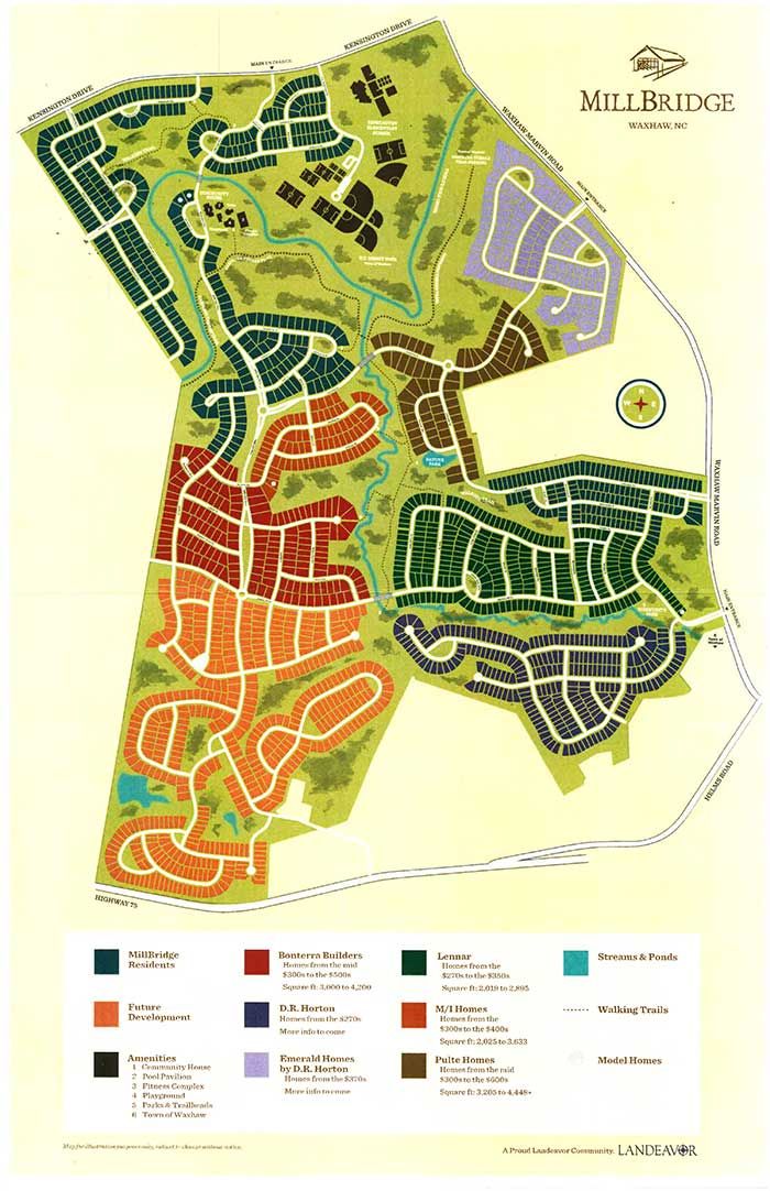 Developer Landeavor (which created the MillBridge brand in 2012) owns vasts expanses of property on the backside of the neighborhood for future phases. It will take several years, at least, for full build-out.