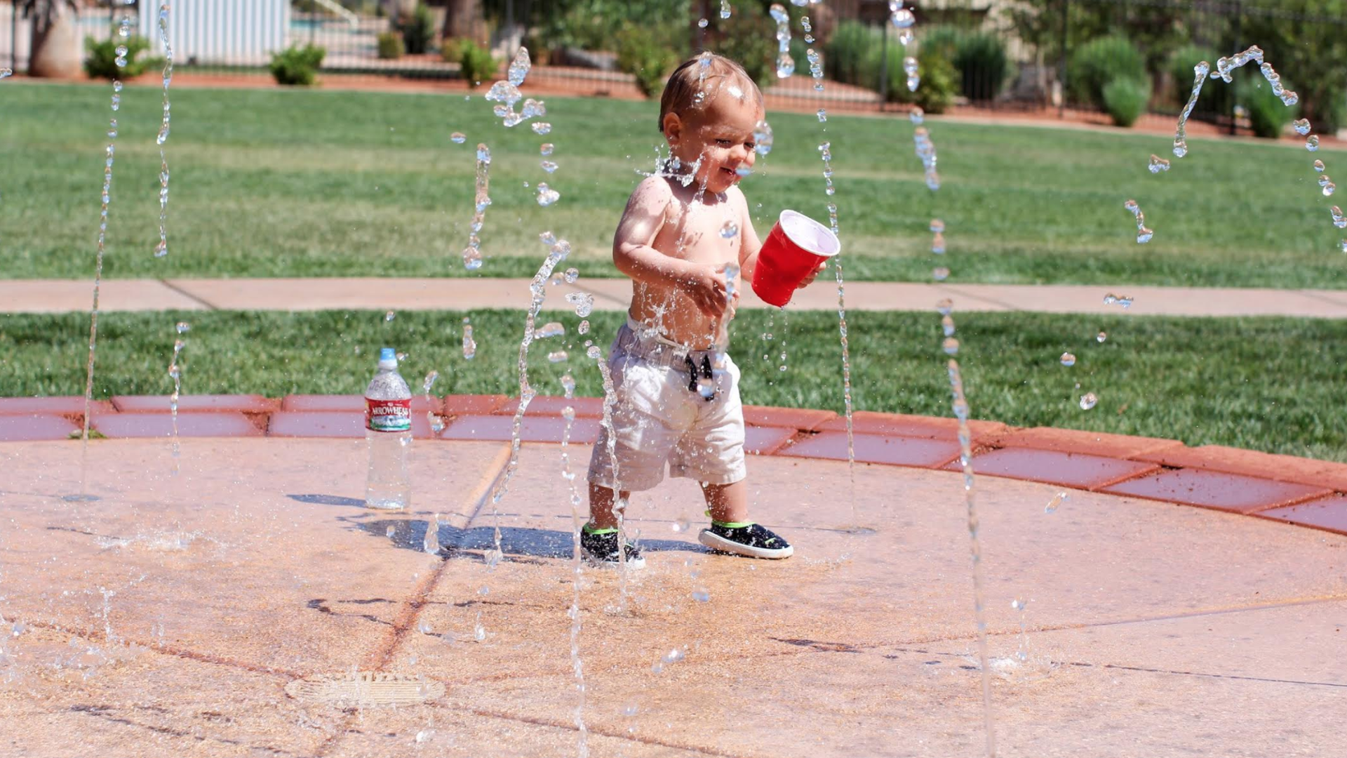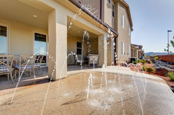 It’s basically a sprinkler on steroids with plumbing, permanent landscaping and programmed fountains. And now you can have one in your backyard.
