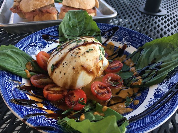 The dinner menu, starting at 5 PM, includes small plates, snacks, and a hand-crafted cheese and charcuterie board. The selections rotate each night, but you’re sure to get a variety each time.