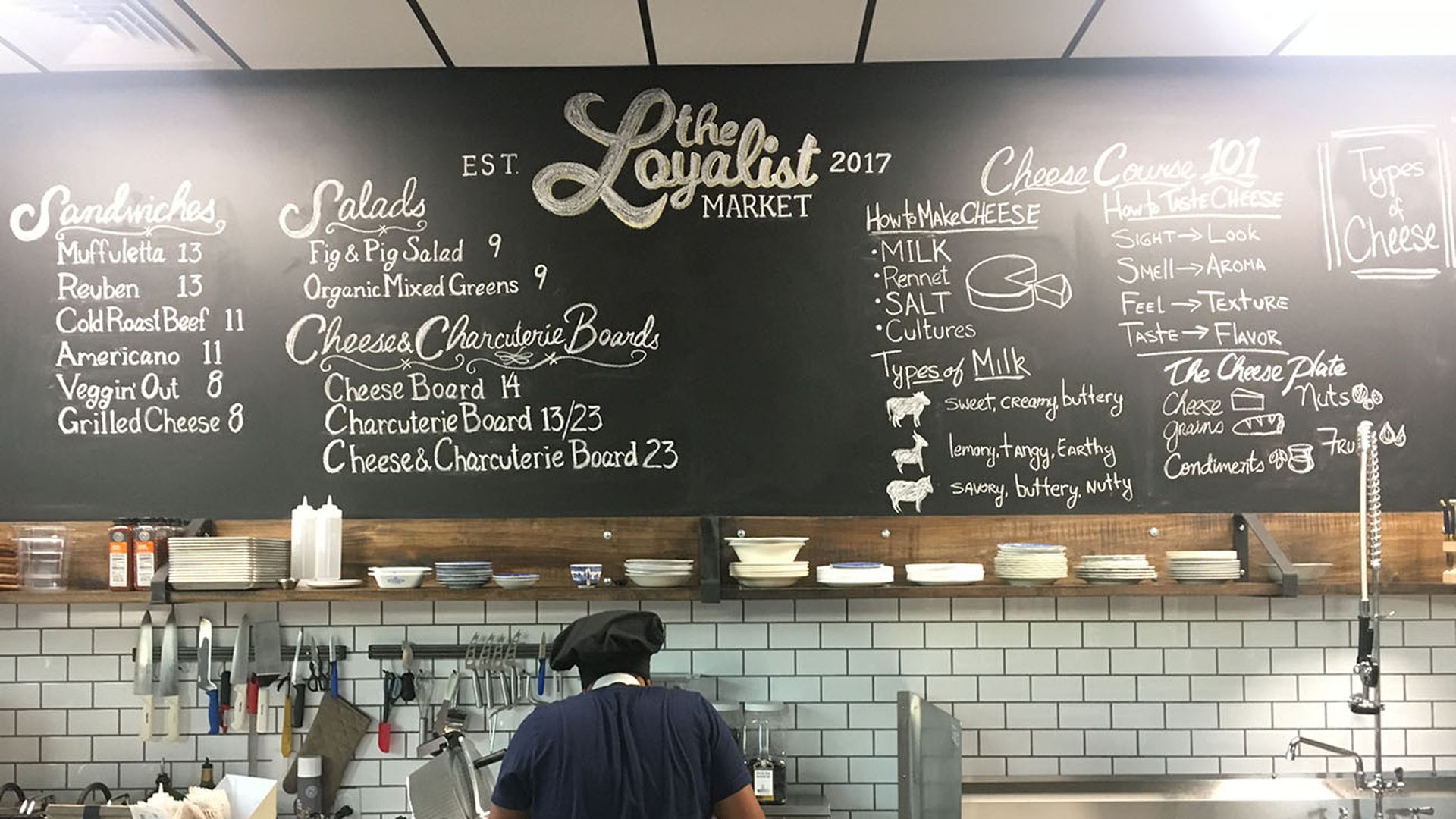 The Loyalist Market is home to 40 artisan cheeses, 15 – 20 charcuterie, 25 beers, 9 wines by the glass, and 13 wines by the bottle.