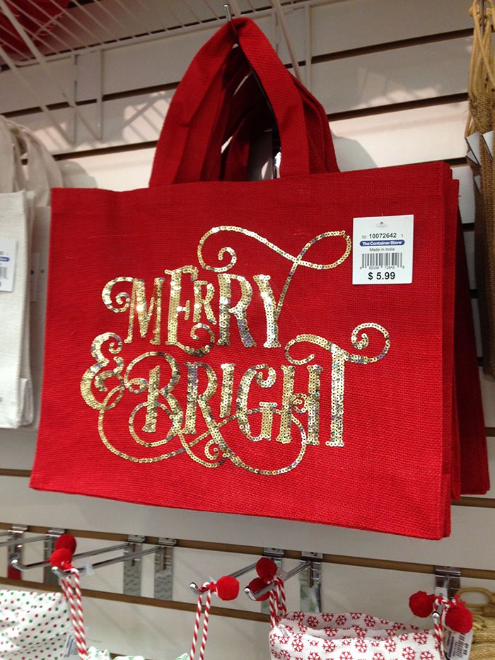 I didn’t anticipate this being a category, but I also didn’t anticipate the variety of chunky knit items at Crate and Barrel. Pillows, throws, stockings, wine bags, table runners, tree skirts, and my fave, garland. In ivory and red (online). 4320 Sharon Road