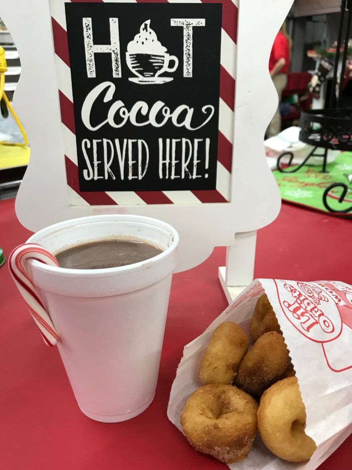 The Christmas Village is located about two-thirds of the way through the driving exhibit. Here, you’re able to park your car and stop by for hot cocoa, funnel cake, mini doughnuts, s’mores and more.
