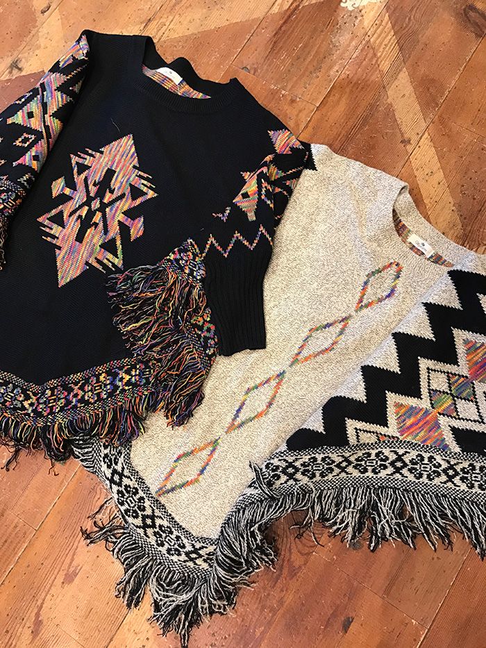 Look for the Glass and Bar Necklace ($42.50), Stone Necklace ($32.50), Gorjana bracelets ($38) and Myersper Ponchos ($89.50 each).