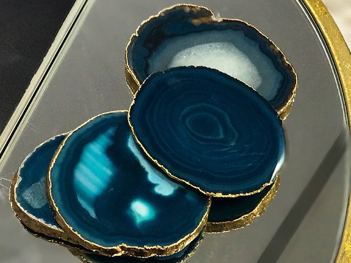 Look for the Chanluu Bandana Neckers ($35), Gigi Personal Pocket Journals ($45 each) and Blue Agate Coaster Set ($90).