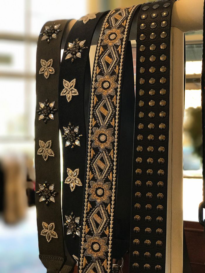 Look for guitar straps by Rebecca Minkoff ($95 each), “After After Party” and “Out of Office” pouches by Rebecca Minkoff ($50 each), Fox Tail and Pom Pom bag and phone charms by Rebecca Minkoff ($48-$68) and phone cases by Rebecca Minkoff ($35-$40).